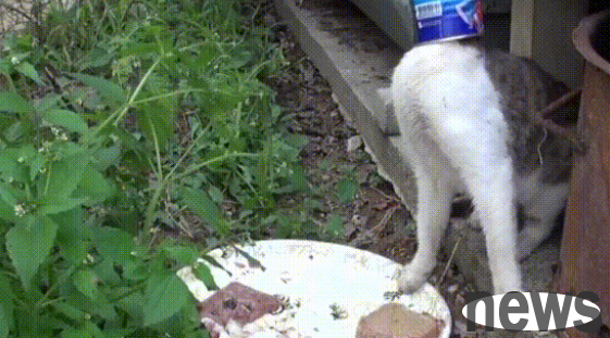 This cat was really attracted by the aroma of food! I saw it clumsily "scooping" some food with one end of the box, then raising its head and trying to "dangle" all the food into its mouth, but most of the food fell from the edge of the box to the ground. The poor little guy could only eat a tiny bit of food at a time.