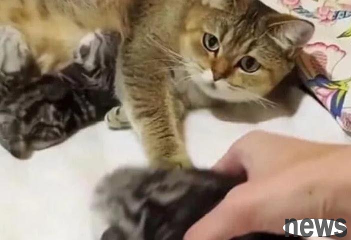 So the owner became more patient and took care of the cat carefully. When the cat gave birth to the baby, the owner was very happy. The cat in his own house naturally trusted him very much, and sometimes he would actively push the kitten in front of the owner.