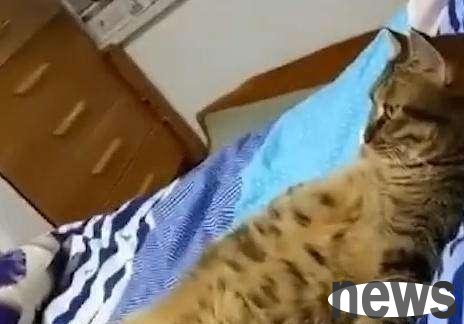 The funniest thing is that one night a few days ago, the owner was lying on the bed and watching TV very leisurely, and the cat was playing quietly on the floor. Halfway through, he went to the bathroom, and later returned to his room and almost burst out laughing when he saw the scene on the bed.