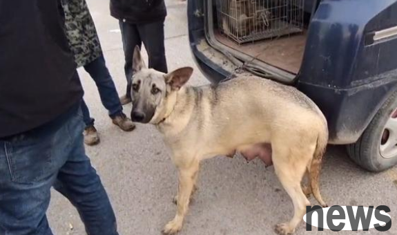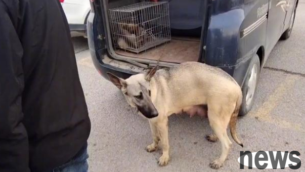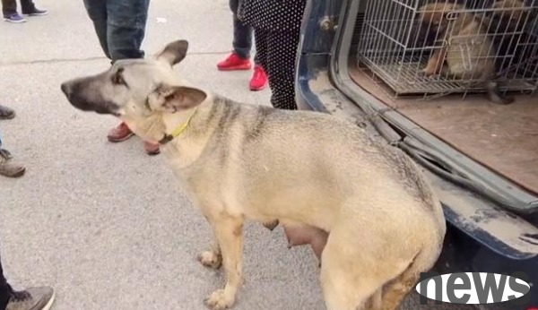 Some netizens found an extremely frightened nursing dog in the dog market