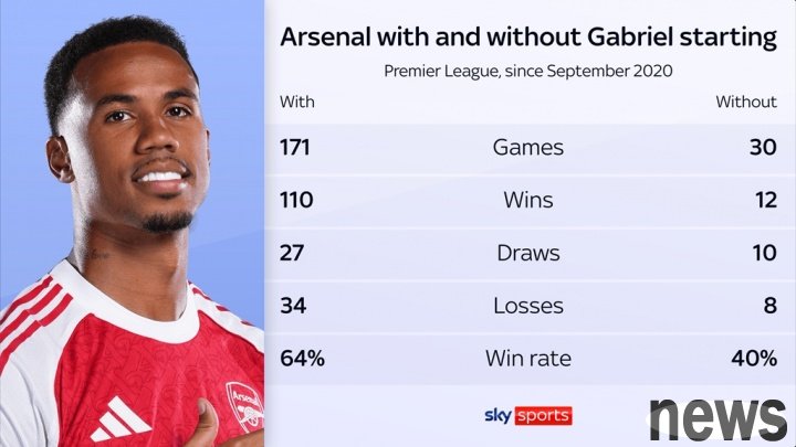 According to Sky Sports statistics, Arsenal's winning rate dropped by as much as 24% without Gabriel.