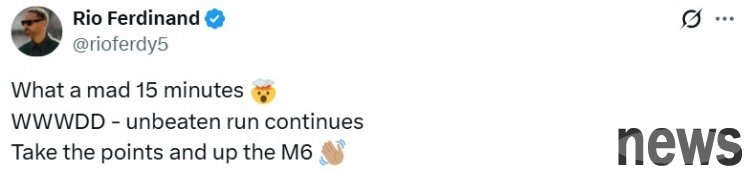Manchester United legend Ferdinand posted a comment on social media: "Crazy 15 minutes, 3 wins and 2 draws, Manchester United's unbeaten streak continues. Accept the points and try to extend to the 6th game."