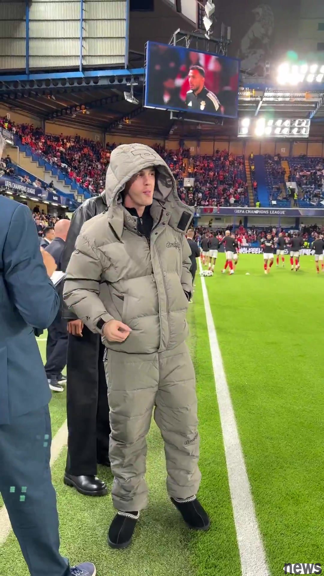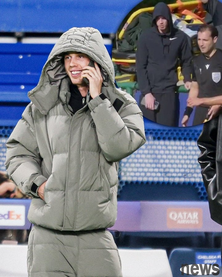 Chelsea beat Benfica 1-0 in the Champions League stage, and Palmer appeared at Stamford Bridge Stadium and watched the game in a large cotton coat + cotton shoes.