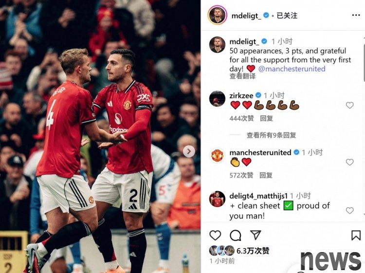 Manchester United beat Sunderland 2-0. After the game, De Rigt updated his social media to celebrate his win.
