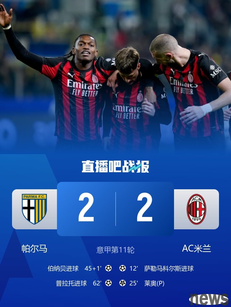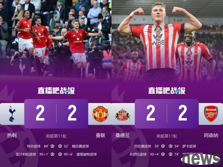 In this round of Serie A/Premier League matches, Milan drew with Parma 2-2, Manchester United drew with Tottenham 2-2, and Arsenal was tied by Sunderland 2-2.