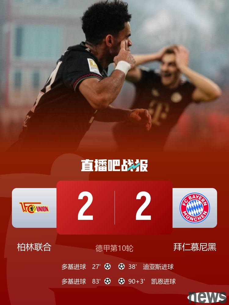 In addition, Bayern, who had "this bye", also tied with Union Berlin 2-2 in this round, ending their 16-match winning streak in all competitions.